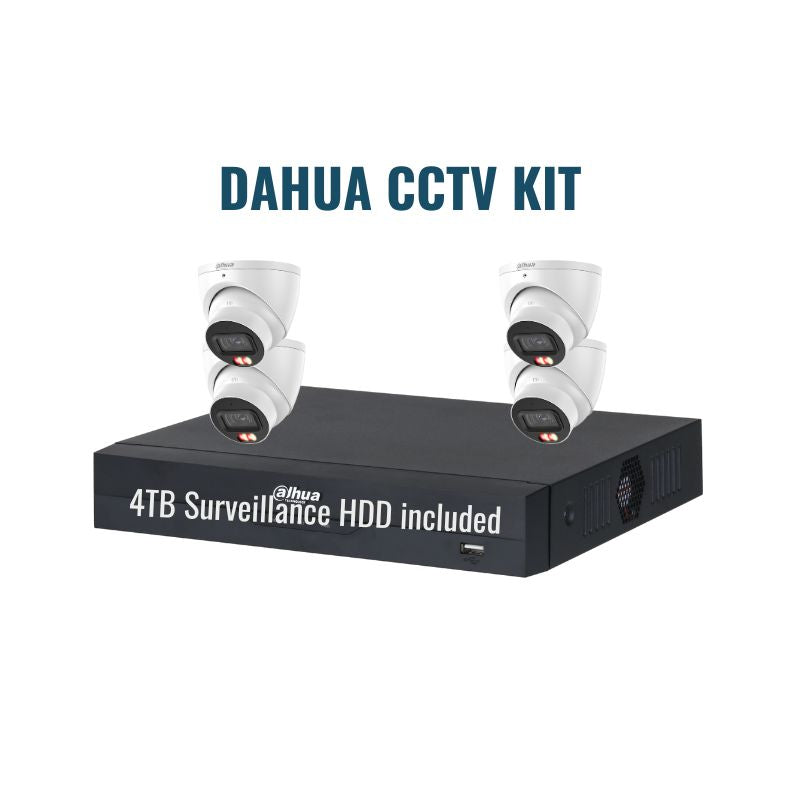 Dahua CCTV Kit 3: 6MP Dual Light 4-Camera Turret 8Ch NVR 4TB Kit.